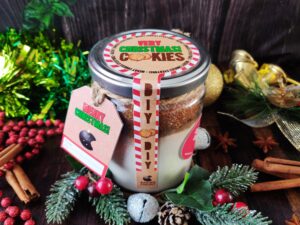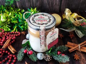 Mieszanki Very Christmas Cookiemix to mieszanka produktów, w których skład wchodzi: mąka pszenna, cukier trzcinowy, pieprz biały, goździk mielony, gałka muszkatołowa mielona, kardamon mielony, cynamon cejloński, imbir mielony i sól himalajska.