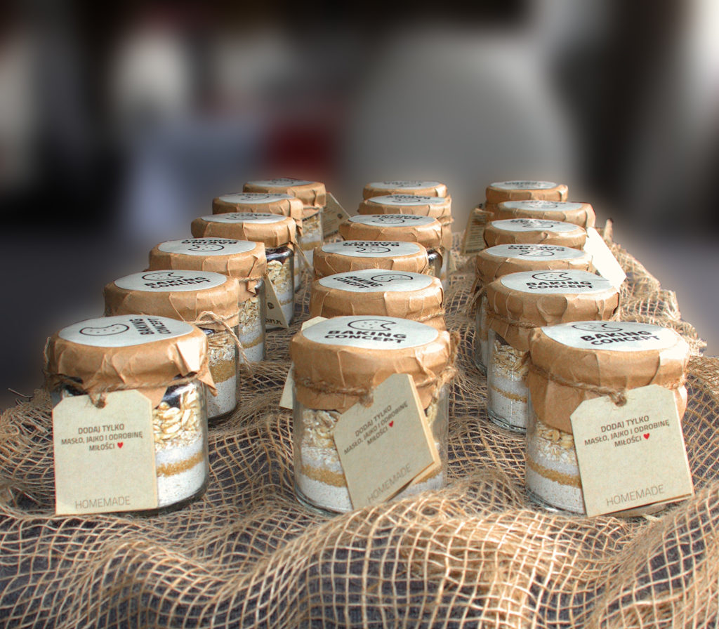 Realizujemy zlecenia na spersonalizowane mieszanki do wypieku pysznych ciasteczek w słoiczkach na chrzciny, urodziny, wieczory panieńskie i inne okazje.