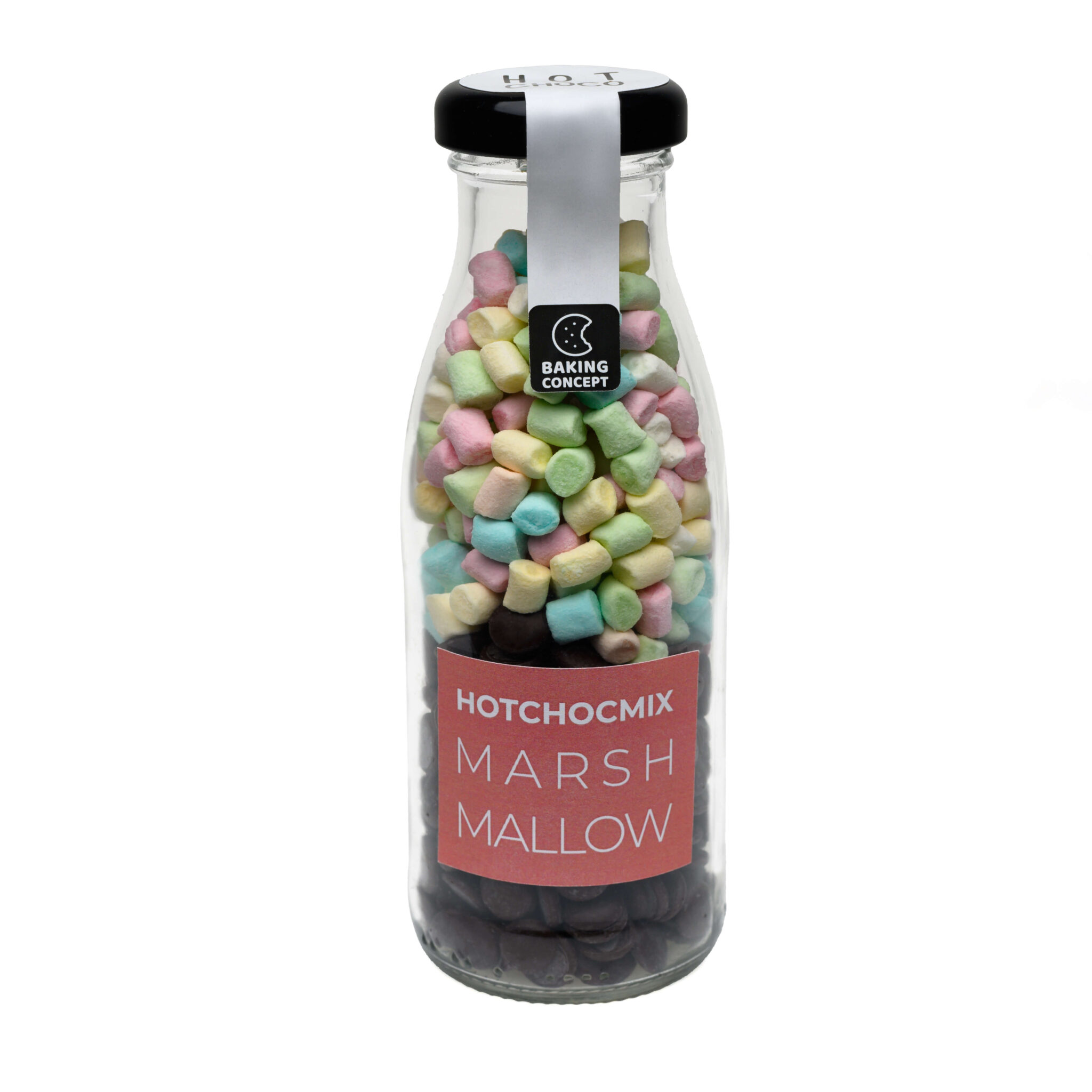 SKŁADNIKI : CZEKOLADA (cukier, miazga KAKAOWA min.34%, masło KAKAOWE , MLEKO pełne w proszku, emulgator: lecytyna SOJOWA, naturalny aromat waniliowy),pianki marshmallow (syrop glukozowy, cukier, dekstroza, woda, substancje utrzymujące wilgoś: syrop sorbitolowy, żelatyna (wieprzowa), koncentraty owocowe i warzywne (burak czerwony, krokosz barwierski, spirulina, aromaty)
